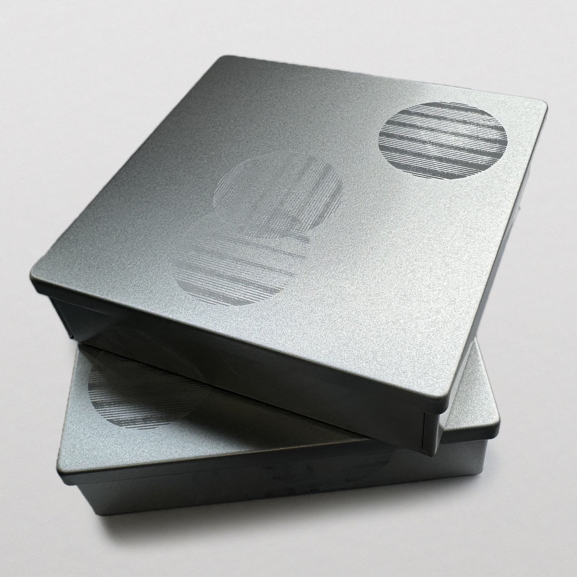 シルバーの缶に手刷りされた白とグレーのチェック模様は、二つの円が織りなす偶然の美を映し出すデザイン。